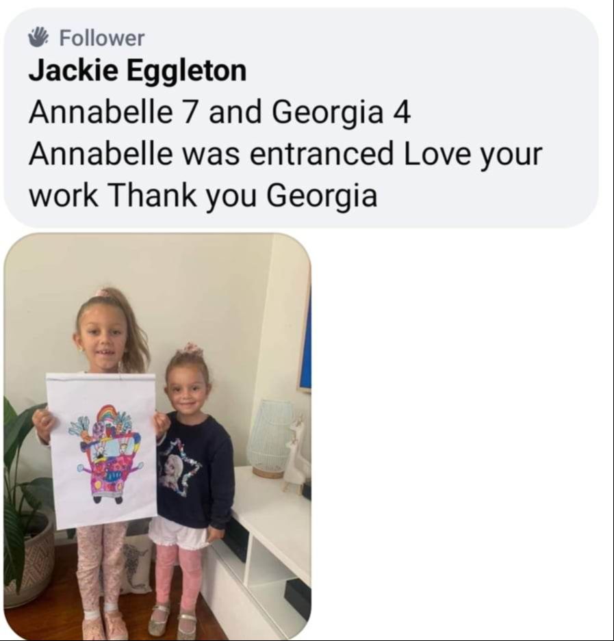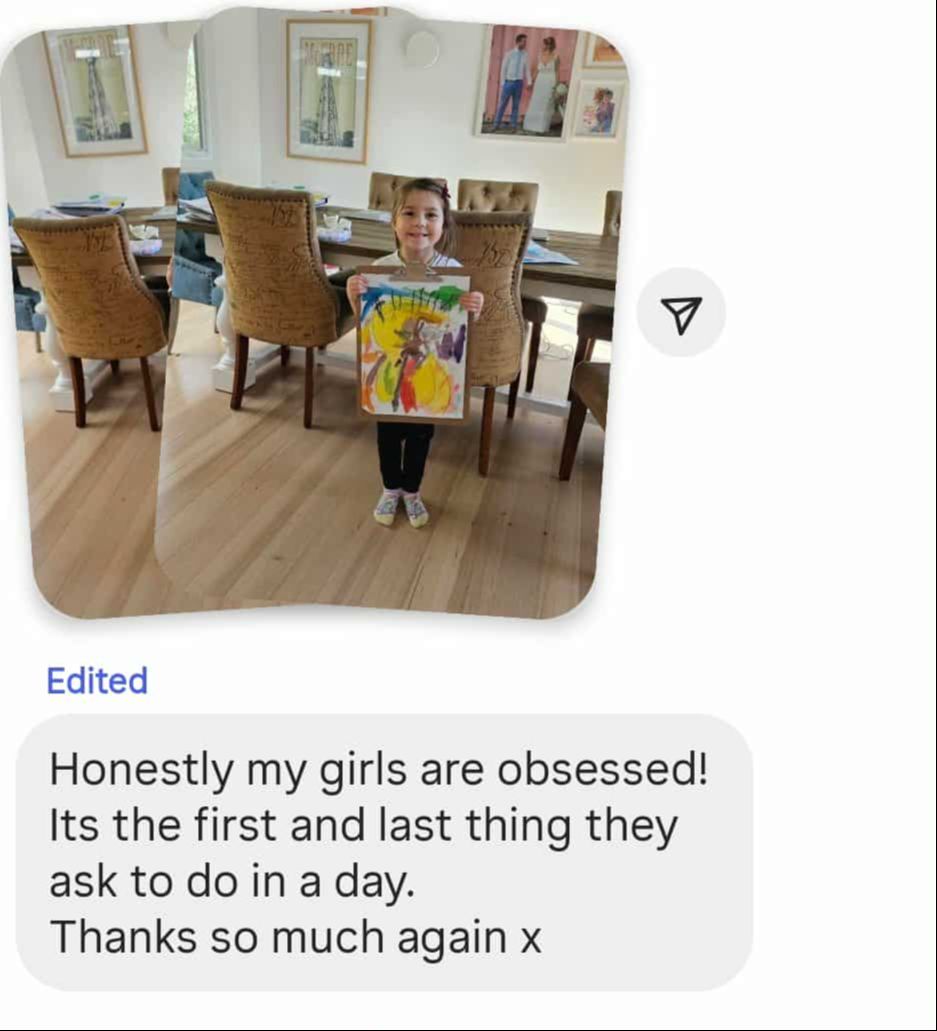 Personalised feedback β Georgie reviews their artwork and cheers them on with supportive video responses that boost their confidence.