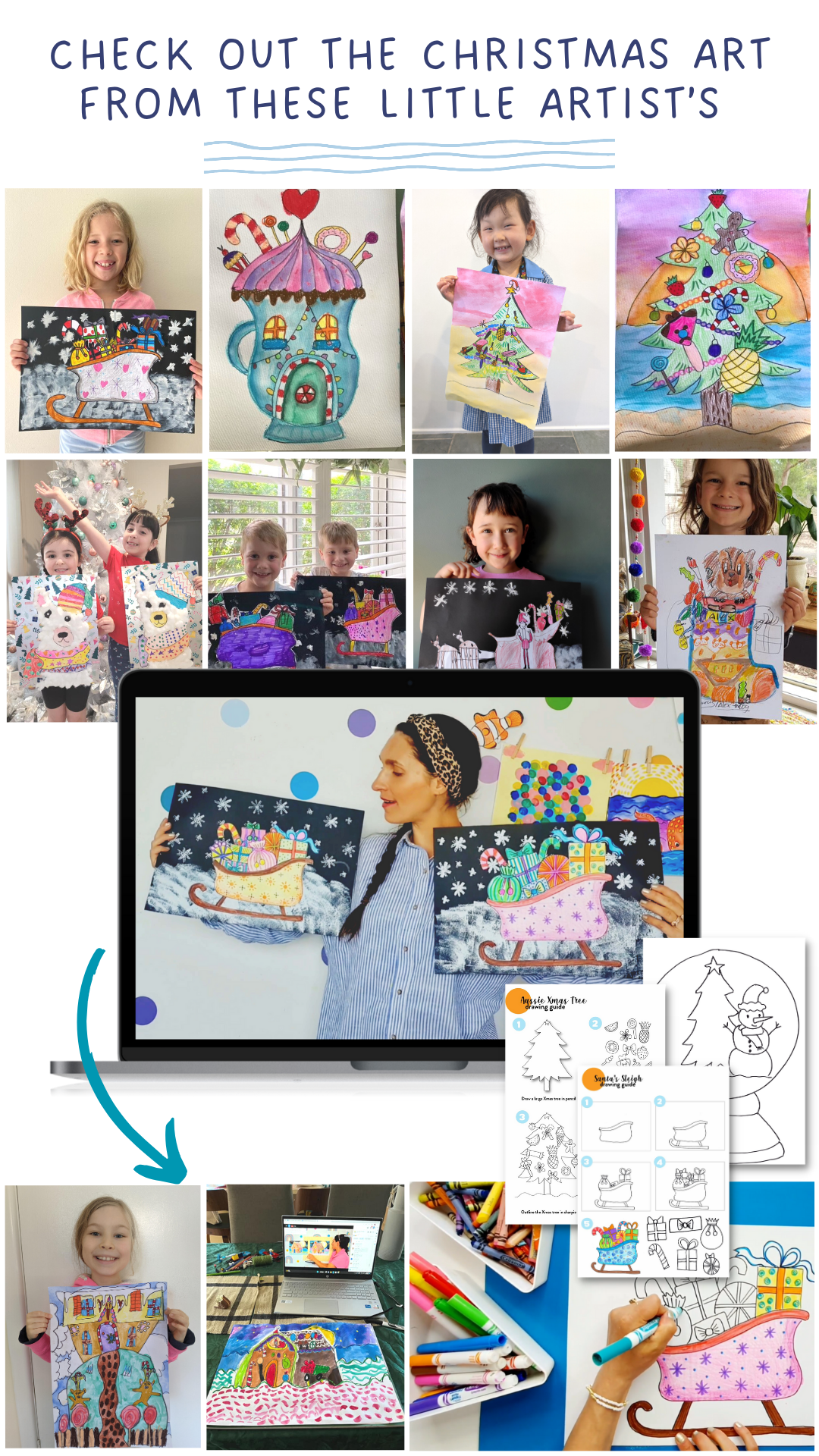 Guided Video Art Lesson: Draw along with Georgie, as she takes your little ones on a magical journey to create their very own Christmas sleigh in a snowy wonderland. It's an art lesson full of holiday spirit and creativity!